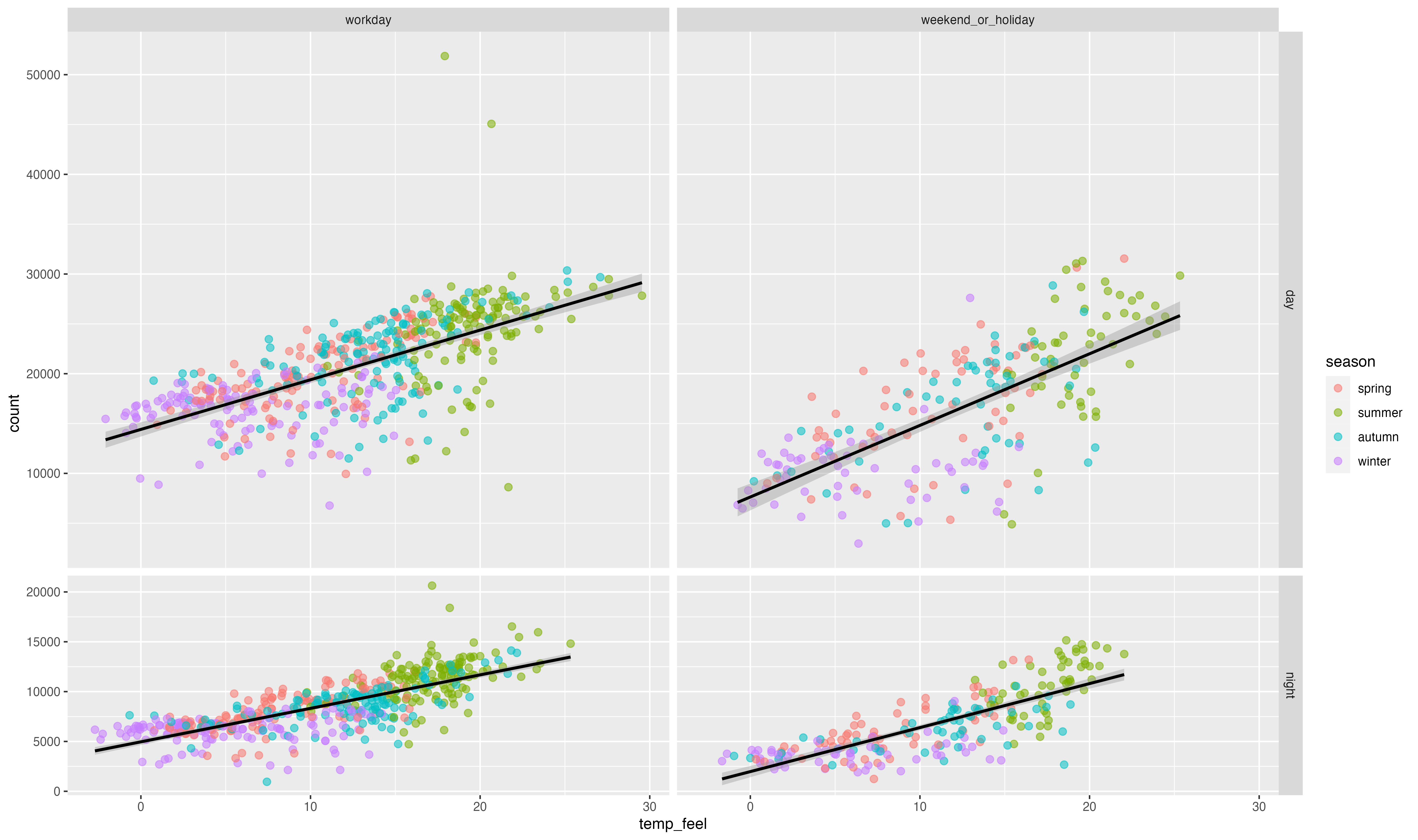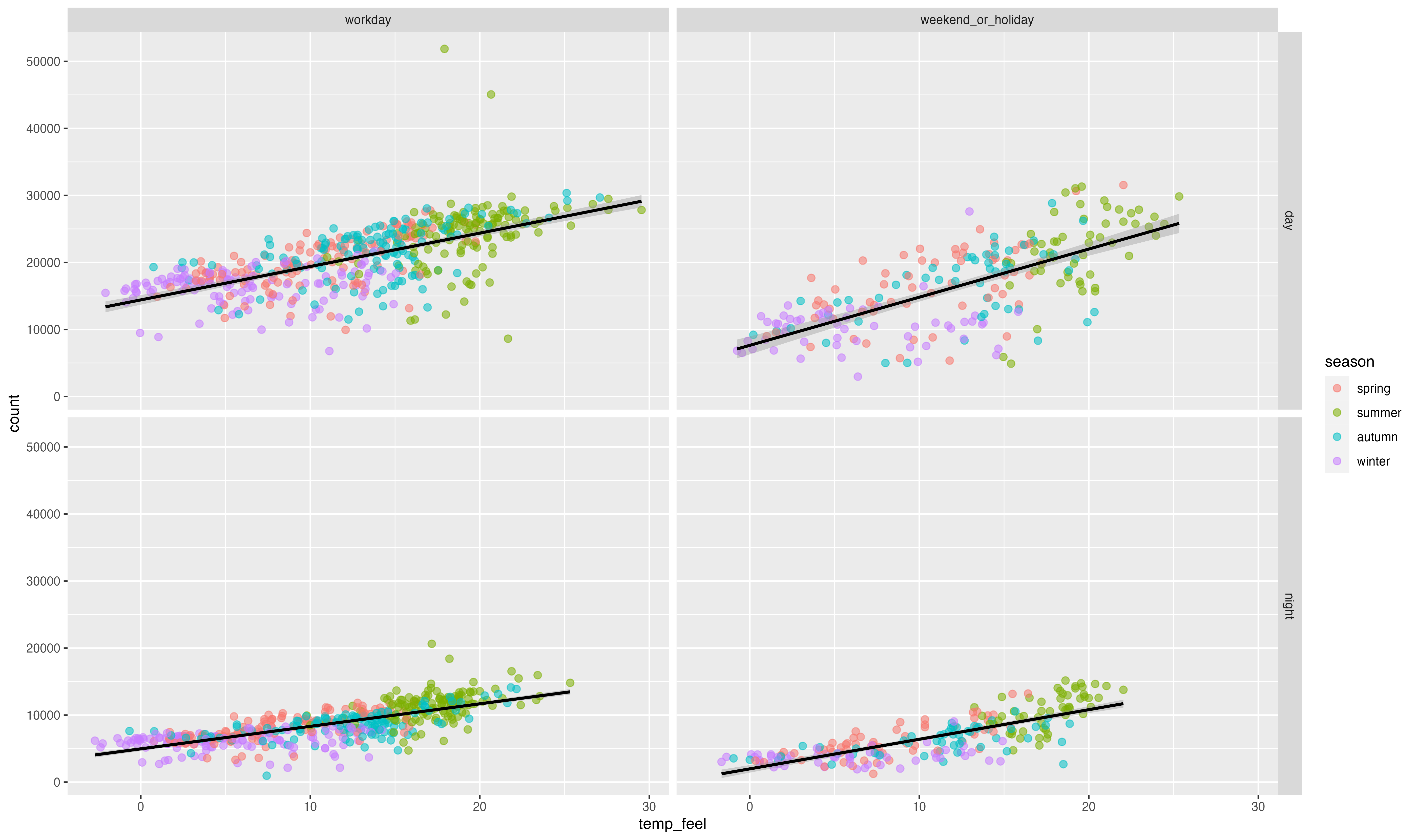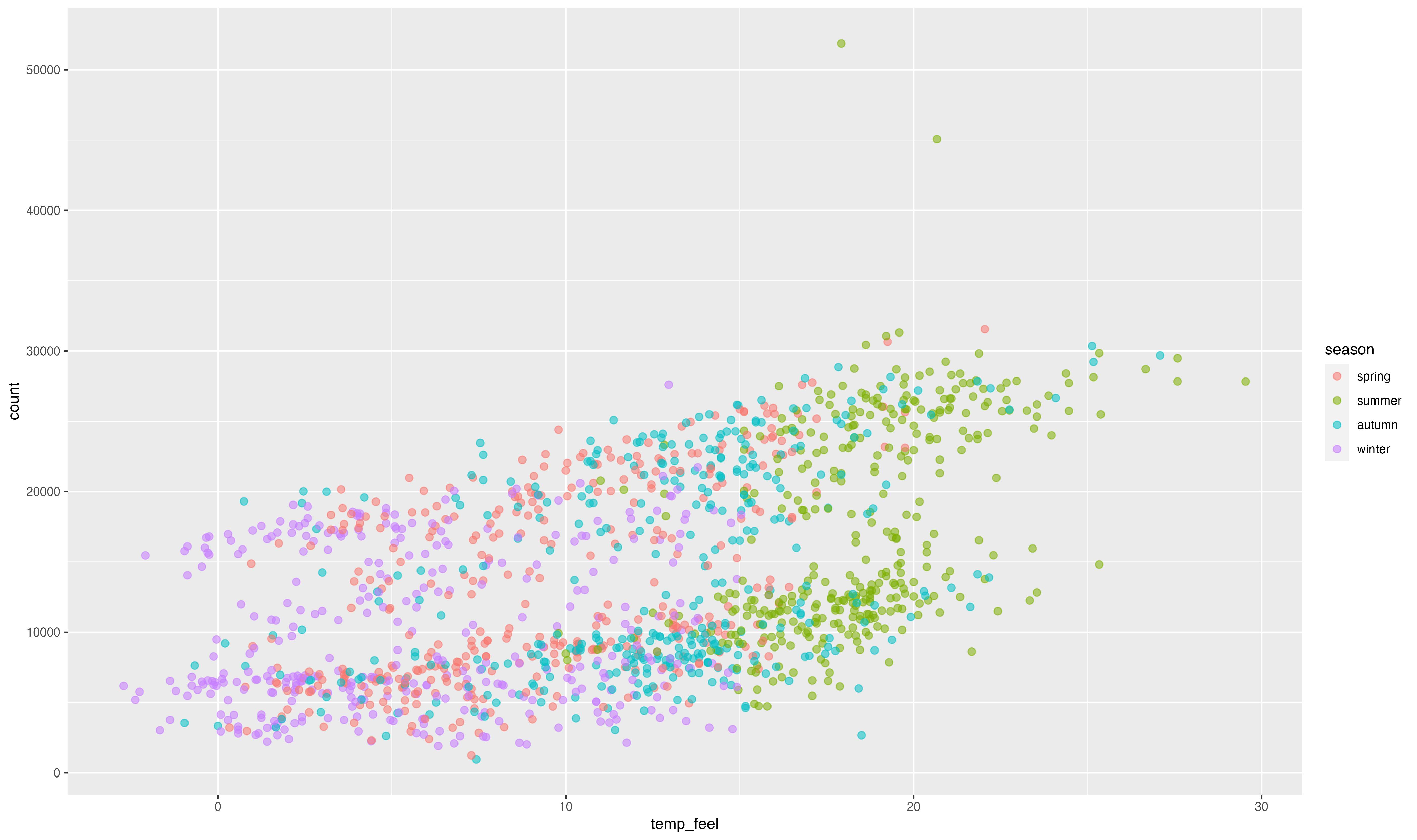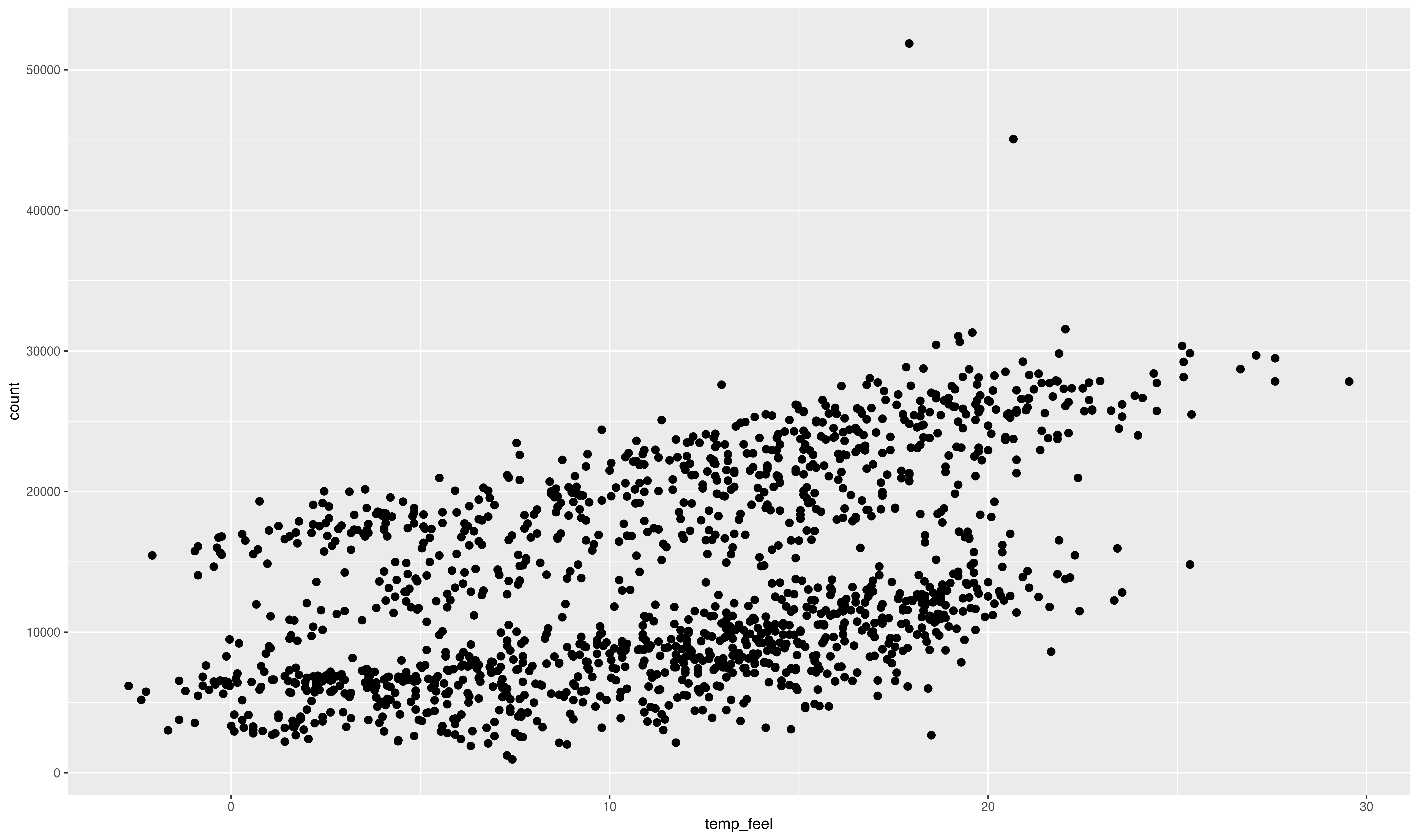 ggplot(bikes, aes(temp_feel, count)) +
