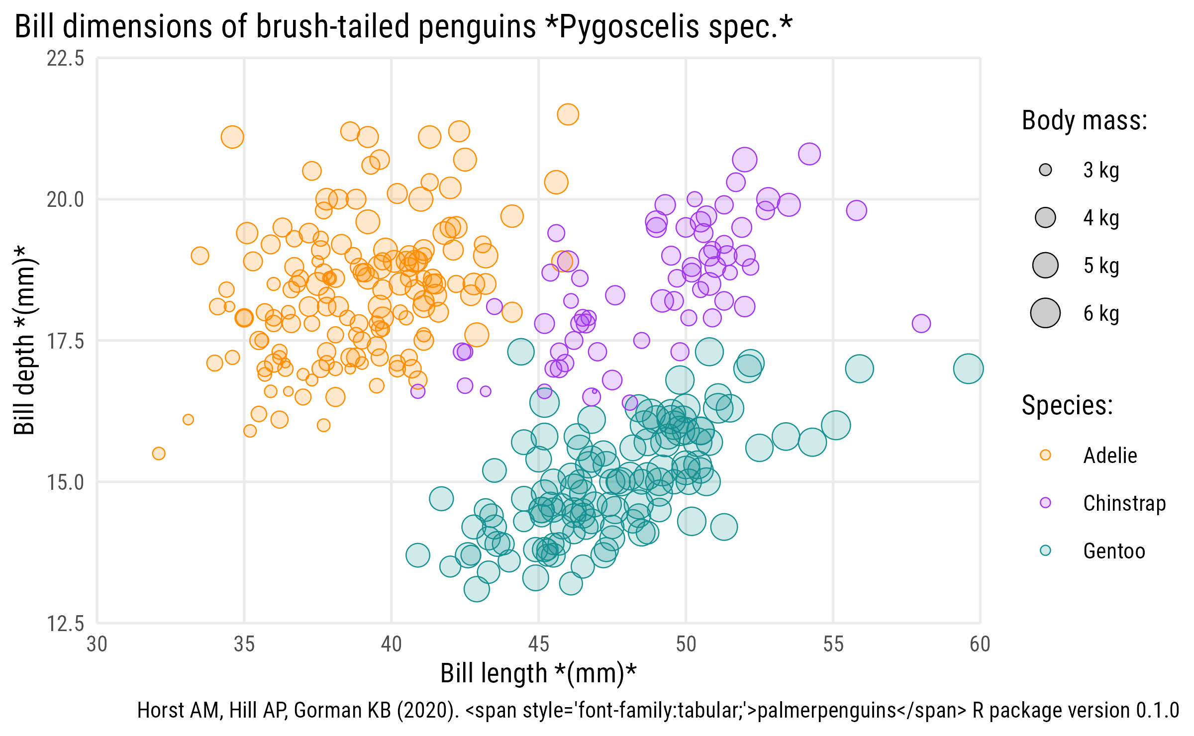 caption = "Horst AM, Hill AP, Gorman KB (2020). <span style='font-family:tabular;'>palmerpenguins</span> R package version 0.1.0"