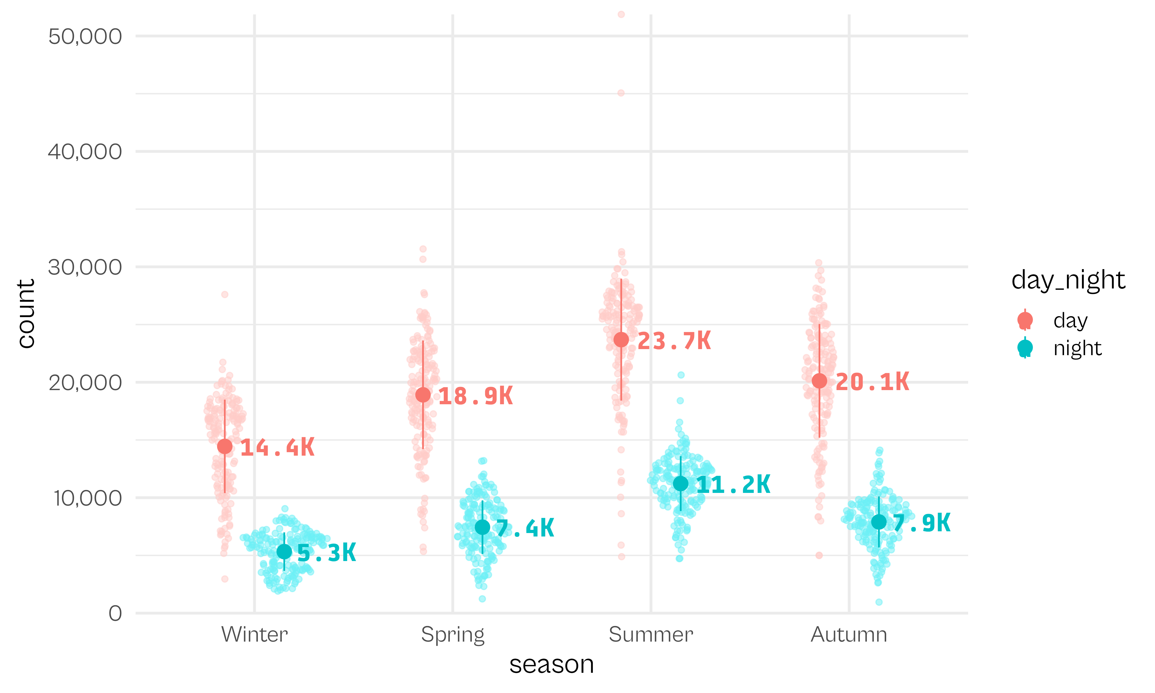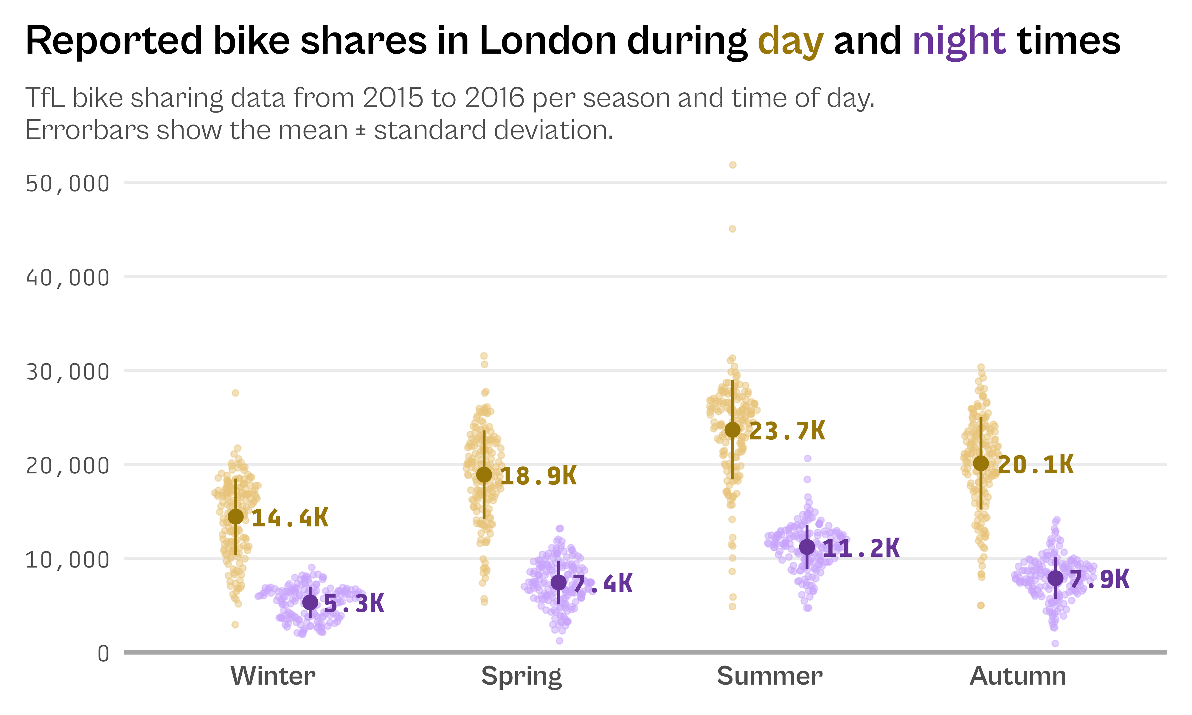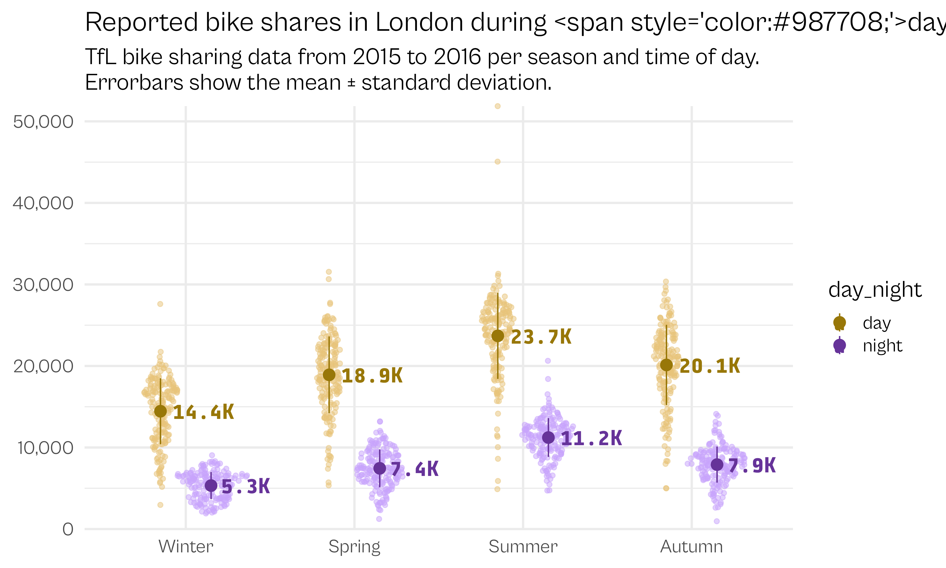 title = paste0("Reported bike shares in London during <span style='color:", colors[1], ";'>day</span> and <span style='color:", colors[2], ";'>night</span> times"),