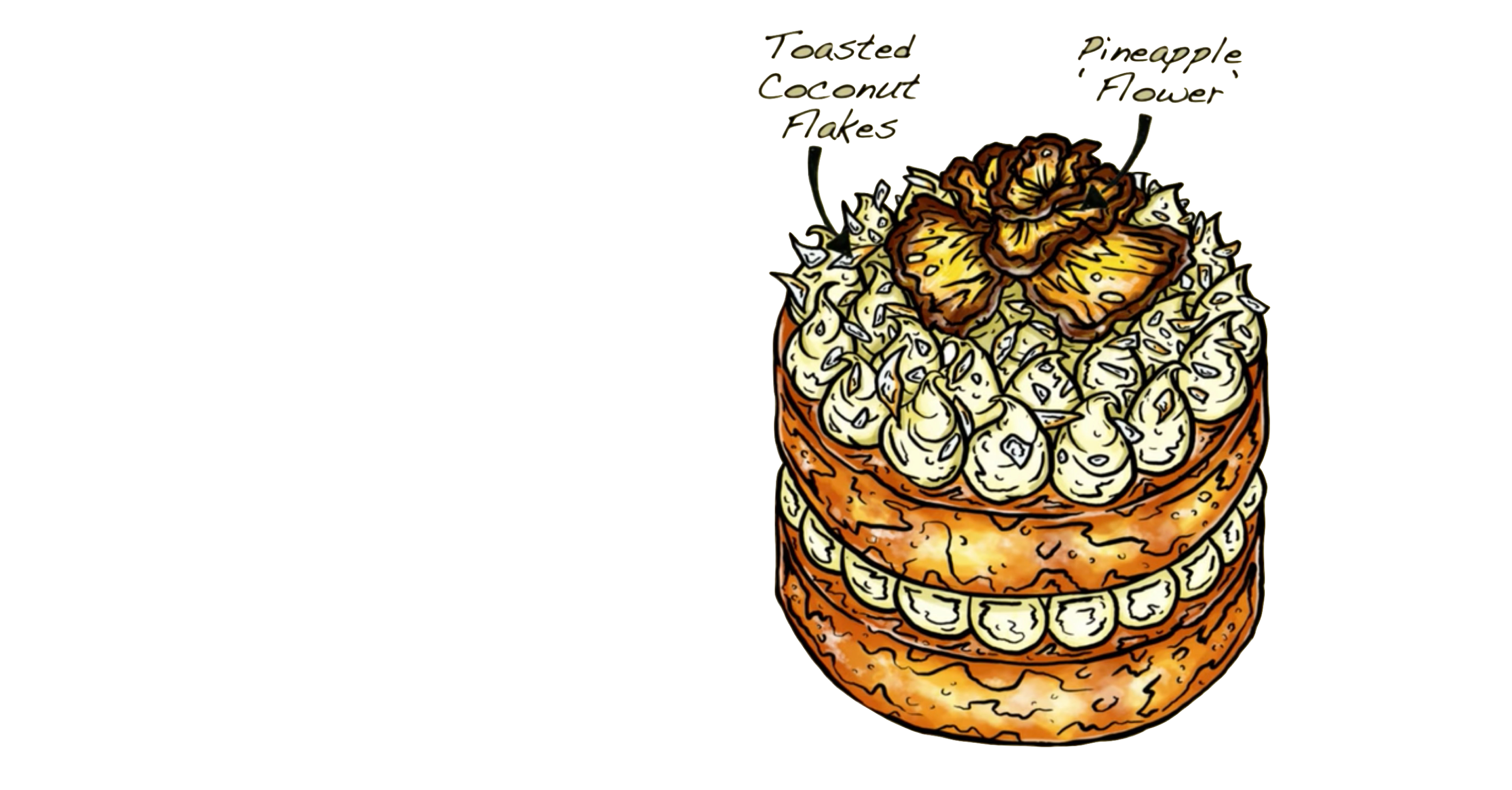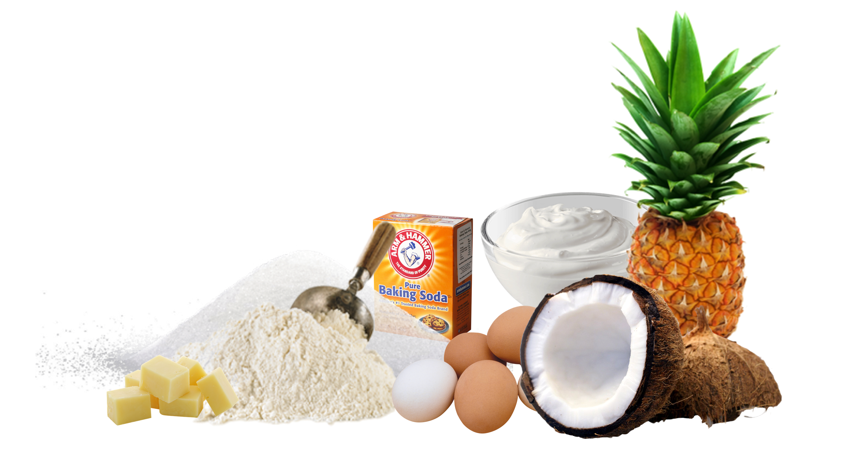 Today we’re going to make a pineapple and coconut sandwich sponge cake with these ingredients