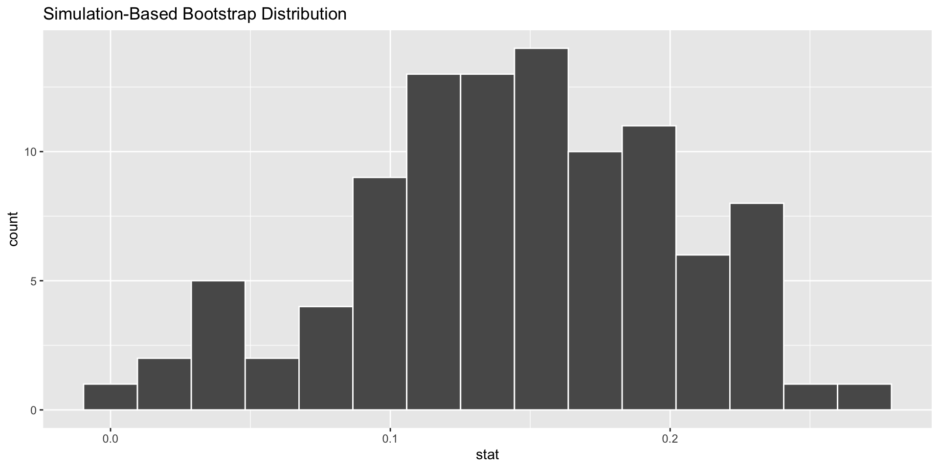 calculate(stat = "diff in means", order = c("male", "female"))Response: score (numeric)